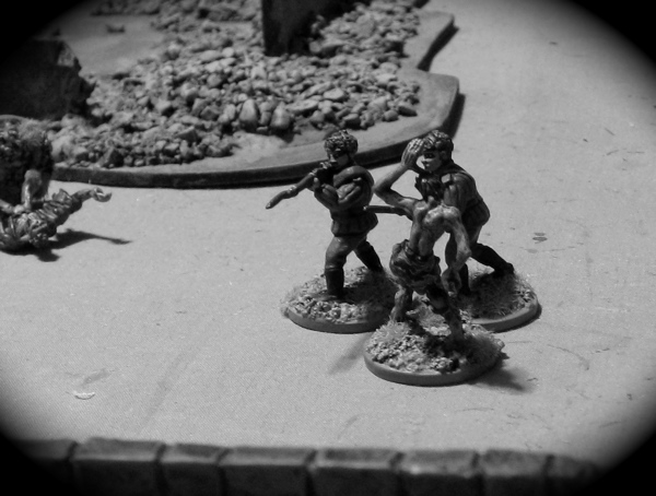 The HMG team was the first to be overrun – despite hundreds of bullets being shot downrange they hadn’t caused a single casualty with their fire. On their first turn of close combat the team leader bashed in one of the zombies head with the butt end of his SMG and it reeled back and crumpled to the ground.